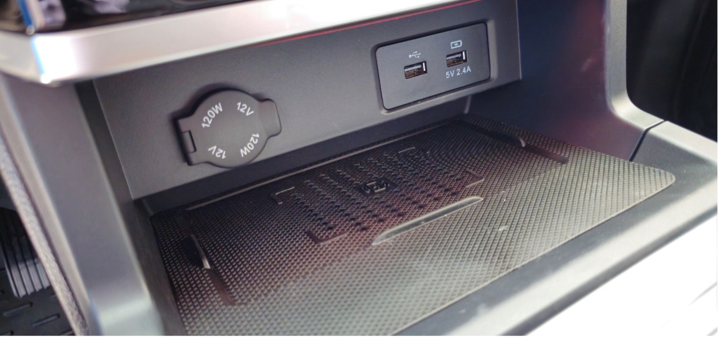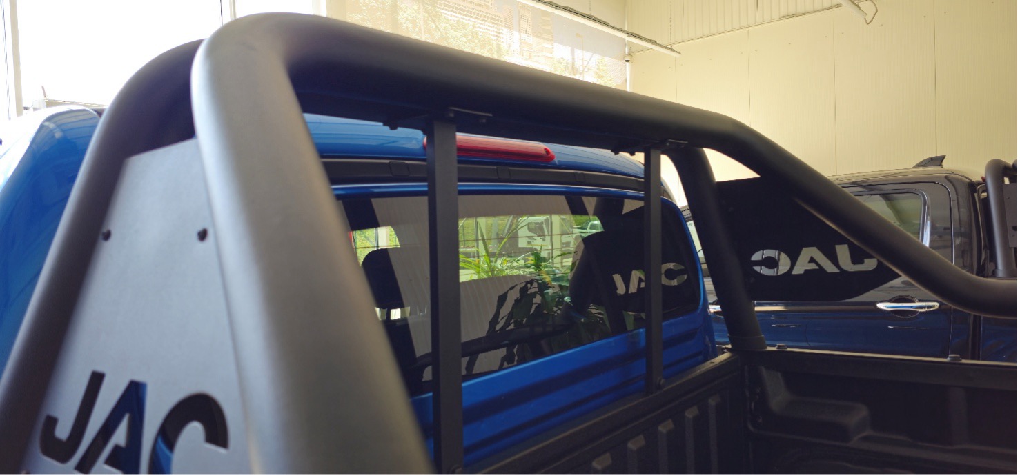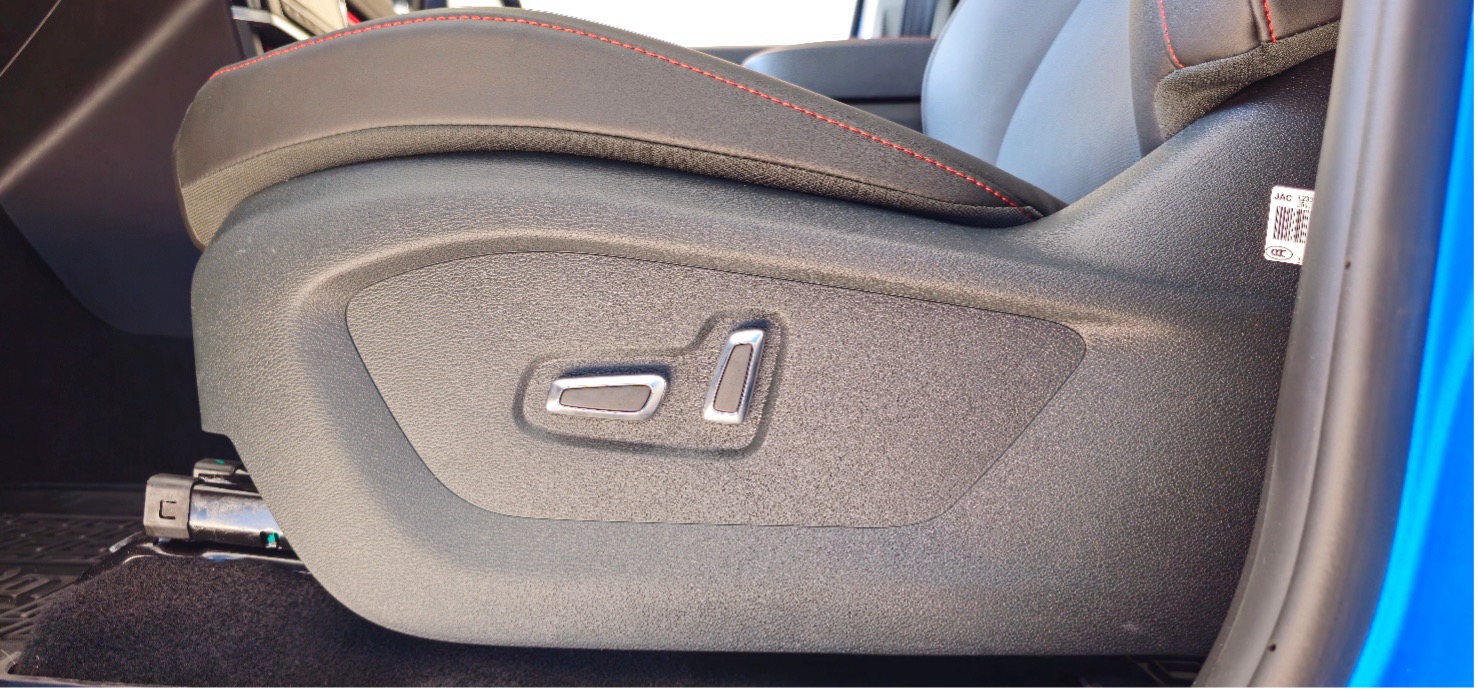 Одна з ключових переваг – практичність. Пластикові накладки на передньому і задньому бамперах, а також на арках коліс, захищають лакофарбове покриття кузова від сколів і подряпин, що особливо корисно для пікапа, який часто використовується в умовах бездоріжжя або для перевезення вантажів. Захисне покриття багажного відсіку забезпечує довговічність і легкість у догляді. Освітлення на висоті: світлодіодні фари головного світла, задні ліхтарі та денні ходові вогні гарантують відмінну видимість у будь-яку погоду. Функція “Проведи мене додому” додає зручності – фари залишаються увімкненими деякий час після вимкнення двигуна, освітлюючи шлях до дому. Протитуманні передні та задні фари, регулювання фар по висоті та автоматичне вмикання/вимикання світла роблять їзду безпечнішою. Колеса – це окрема гордість: литі двокольорові диски розміром 265/60 R18 виглядають стильно і забезпечують стабільність на дорозі. Бокові дзеркала з електрорегулюванням, підігрівом і хромованим оздобленням, хромовані дверні ручки, кнопка безключового доступу, бризковики та підножки (які особливо зручні, адже пікап високий) – все це робить T9 EV не тільки красивим, але й функціональним Інтер’єр: Комфорт і Стиль у Чорно-Червоному Виконанні Зайдіть усередину JAC T9 EV, і ви відчуєте себе в преміум-класі. Салон виконано в чорному кольорі з червоною строчкою, що додає спортивності. Оббивка сидінь зі шкіри, шкіряна оббивка керма – все це створює атмосферу розкоші. Кермо регулюється по висоті, мультифункціональне.   Електрорегулювання сидіння водія в 6 позиціях і пасажира в 4 позиціях дозволяє налаштувати ідеальну посадку. Авто-режим та антизащемлення для всіх склопідйомників, датчик дощу, клімат-контроль – це стандарт комфорту. Звукоізоляція на високому рівні, а гідравлічні упори капота полегшують доступ до двигуна. Деталі, як кубічний малюнок на колонках аудіосистеми та важіль перемикання передач у формі диску, додають унікальності. Кольоровий дисплей бортового комп’ютера завжди тримає вас у курсі всіх параметрів. Мультимедіа: З’єднаність і Розваги на Дорозі JAC T9 EV оснащений сучасною мультимедіа-системою, яка робить кожну поїздку приємною. 10,4-дюймовий кольоровий сенсорний екран, функції радіо, Bluetooth і інтеграція зі смартфоном через Apple CarPlay та Android Auto. 6 динаміків забезпечують якісний звук, в наявності два порти USB + один Type-C, а бездротова зарядка смартфону дозволяють залишатися на зв’язку без зайвих дротів.